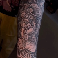 Работаю в суровом Челябинске. Творю и тружусь в студии «Kartel». Меня вдохновляют орнаментальные мотивы, но клиенты часто отдают сердце-графике. Стараюсь сроднить два направления, во имя всеобщего блага❤️