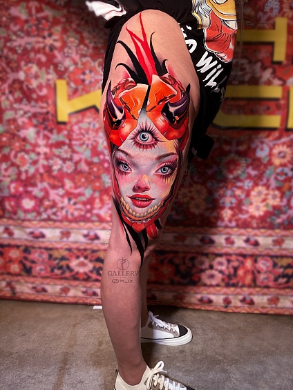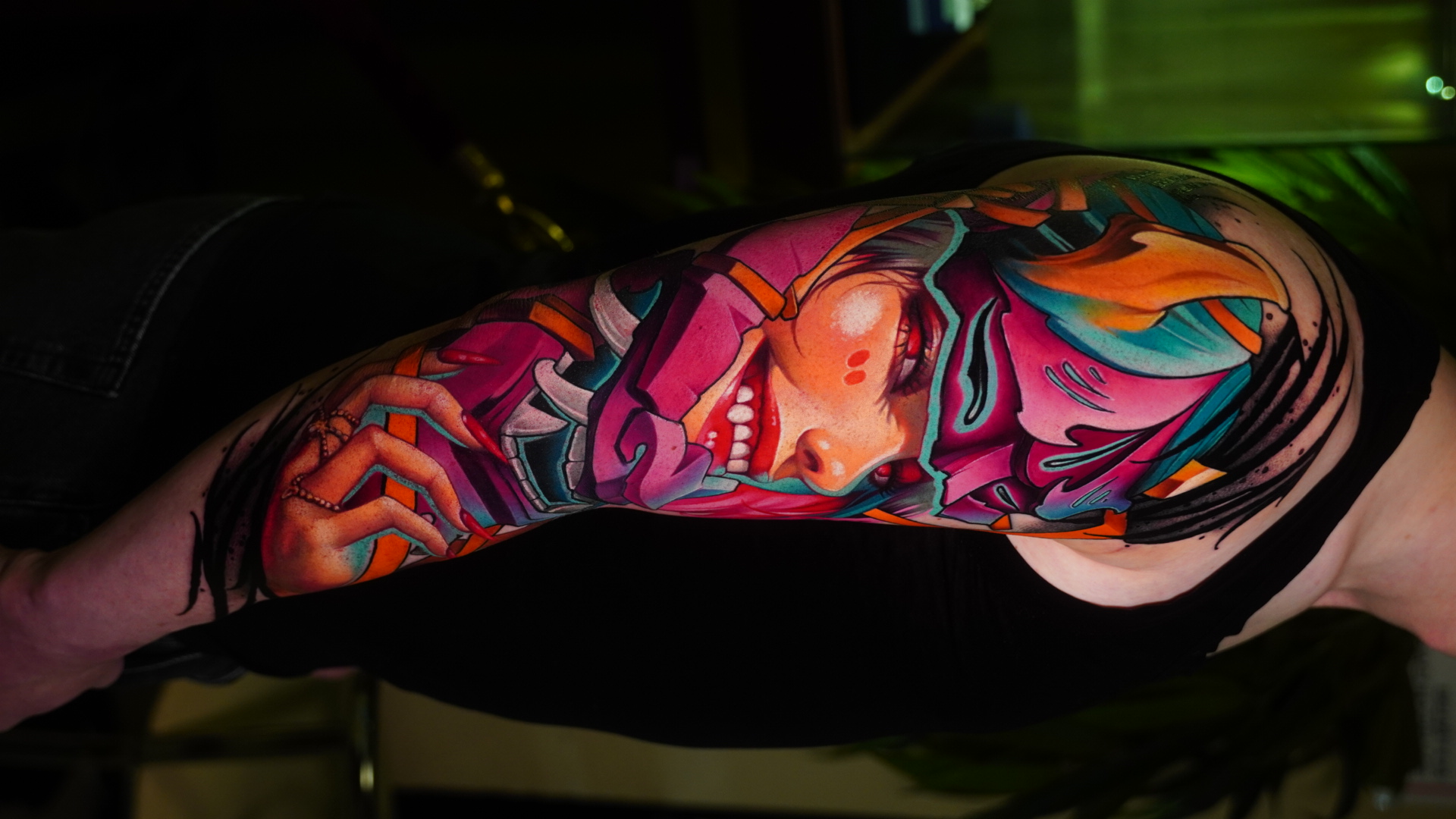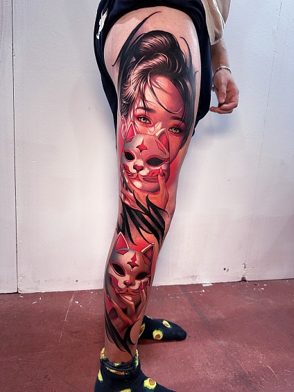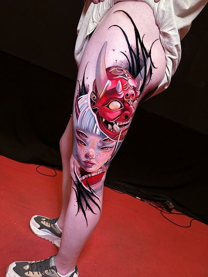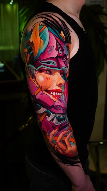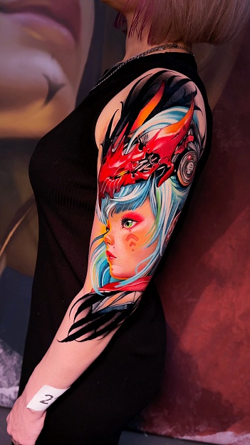 Лучший мастер на земле! Лучше и не скажешь. Являюсь гордым обладателем ее рукава (три первых места в реализме), сейчас бьем спину. Но места еще много…